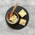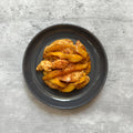チーズトーストにお好みの大きさに切ったドライりんごをトッピングしました。チーズの塩気とリンゴの甘味を一度お試しください。