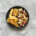 スーパーで売られているミックスナッツと7Dドライマンゴーを盛り合わせただけです。ナッツの香ばしさとマンゴーの甘味で手が止まりません。