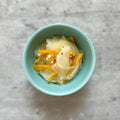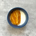 ドライマンゴーをプレーンヨーグルトに3~4時間つけるだけで、もぎたてのようなプルプル食感のマンゴーにもどります。